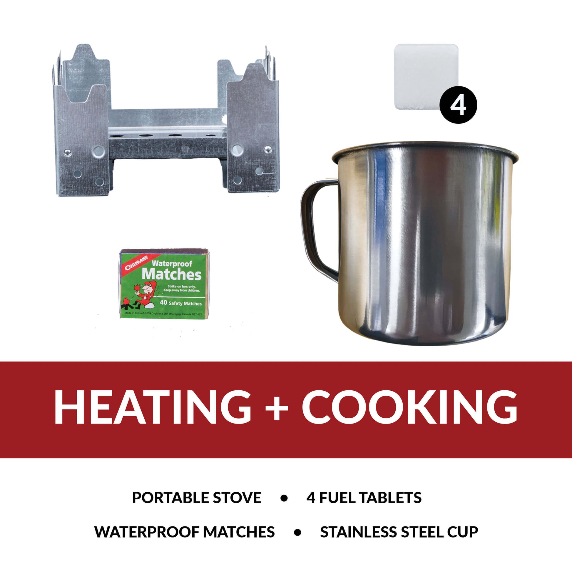The Camo 64 Piece Survival Backpack provides you with everything from first aid necessities to waterproof matches. It even includes 32 servings of entree options to keep you replenished and energized for the days ahead and a portable stove to simplify reconstitution.