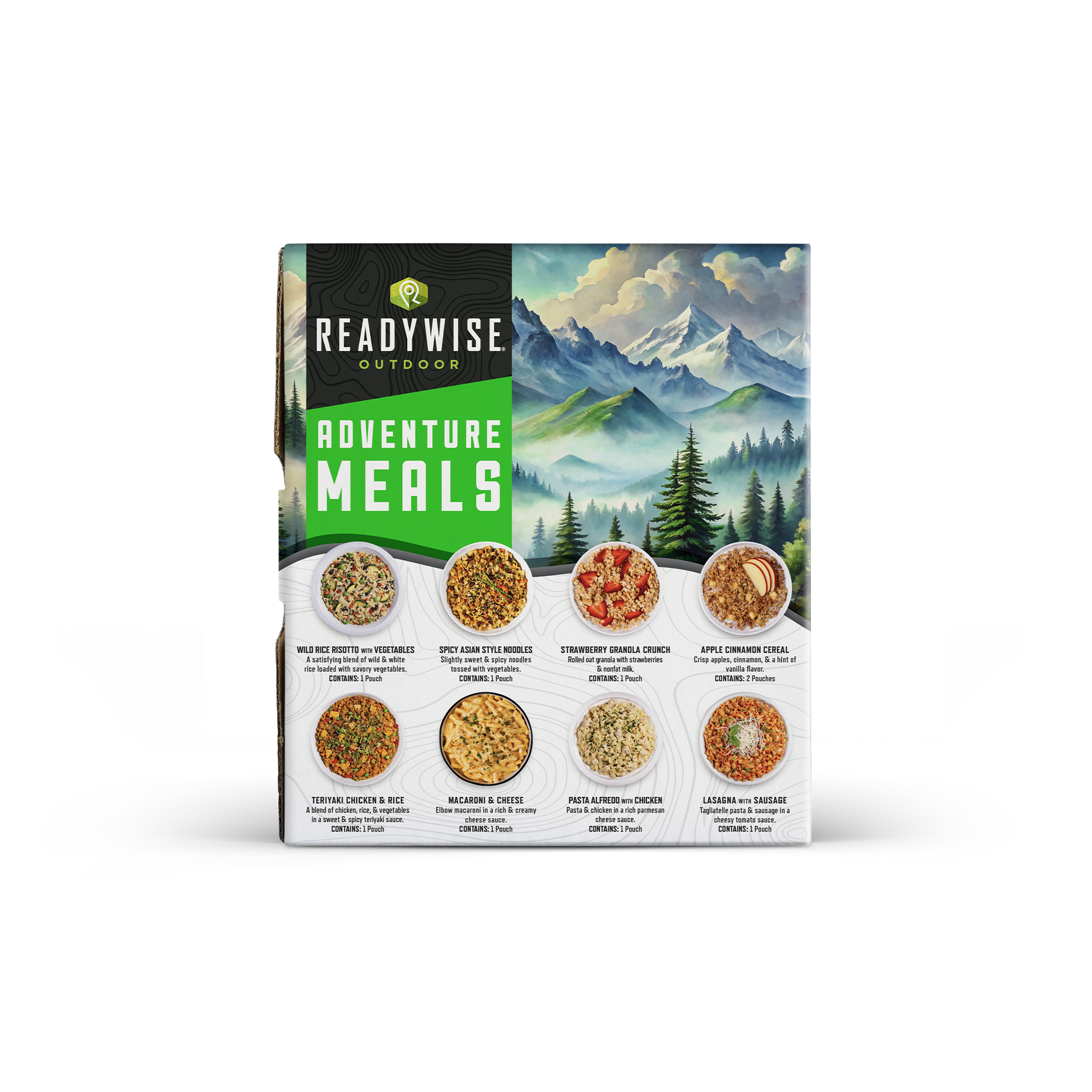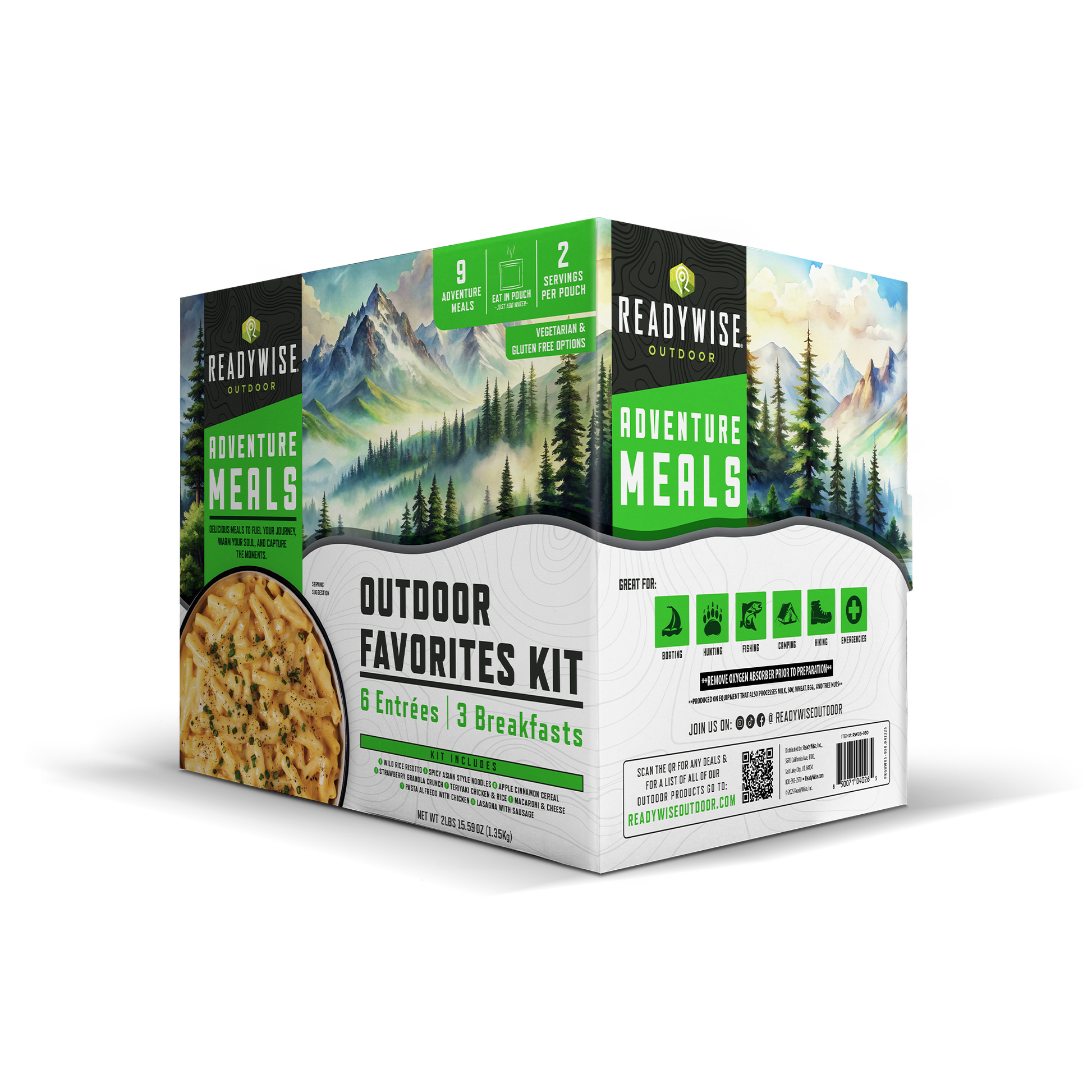The Outdoor Favorites Kit is built for anyone who values convenience, reliability, and preparedness—whether on the trail, at camp, or at home. With 9 pouches and 18 total servings, this kit provides hearty freeze-dried meals that are lightweight to carry and simple to make. Just add water and you’ll have a hot, satisfying meal ready in minutes, no pots or pans required. Eat directly from the pouch for easy, mess-free dining anywhere.
